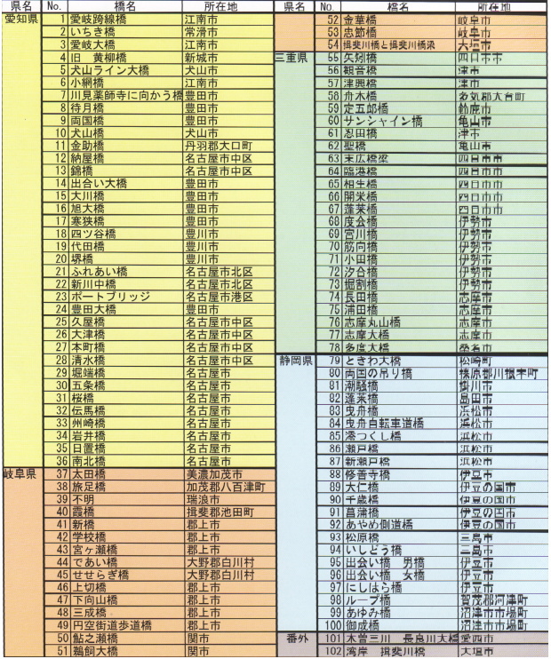 中部地方の橋百選 掲載橋梁一覧